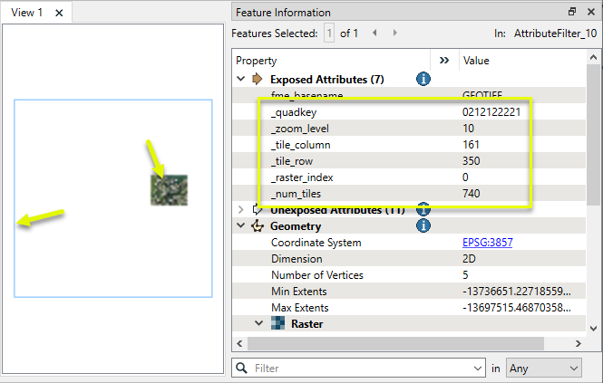 - Attributes can be used for output file naming - for example the output feature type name can be set to the Quadkey attribute value.