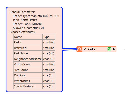 A summary annotation is an FME-generated comment that provides information about any object in the workspace. This item can be a reader or writer feature type, or a transformer. Summary annotations automatically update if its attached object is changed. Summary annotations are useful for wizard-based transformers where checking transformer parameters can be time-consuming.