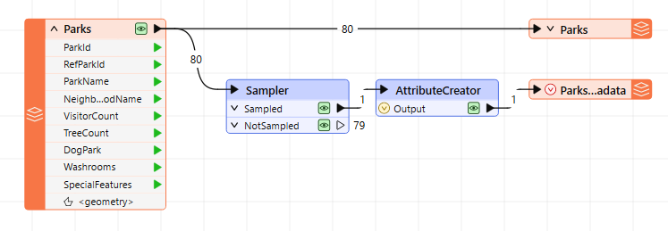 Data caching seamlessly integrates the workspace with Data Preview or the FME Data Inspector. When enabled, output ports record feature data in temporary caches, which you can view and inspect after completing a full or partial translation, or even mid-translation.