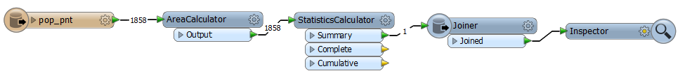 - 1858 features entered the StatisticsCalculator, but only 1 emerged. Therefore the StatisticsCalculator must be at fault.