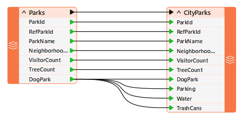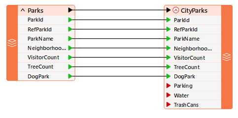Using the Attribute Connections feature allows you to quickly connect source feature type attributes to a destination feature type. If you have many connections to set, this method is usually the fastest way to do it.