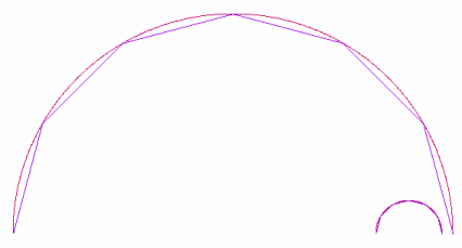 b. Stroking the arcs by setting the Stroking Tolerance to 0.1 units will result in the following: