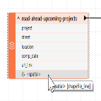 In the Schema Preview window, you can view the attributes (exposed) and geometries of your data at any point in your workspace.