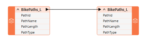 Here, a connecting line from source to destination feature type is being created by dragging the arrowhead from source to destination: