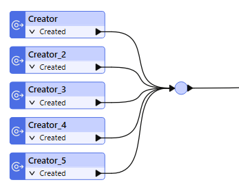 Junctions are a useful tool for managing connections as you build and organize a workspace. For example, you have several Creator transformers that you want to join before you proceed with building the rest of the workspace. You can create a Junction in the workspace that brings them together.
