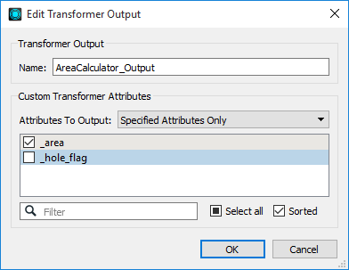 - Specified Attributes Only: The port outputs only the attributes whose checkboxes are selected. Any attributes that are not selected are removed and are not available to subsequent custom transformers, workspaces or feature types.