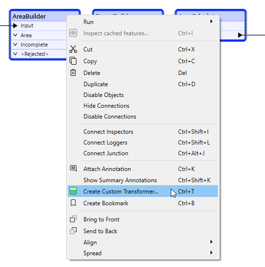 - Press Ctrl + T, or right-click and select Create Custom Transformer.