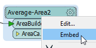 You can change between using the linked version and the embedded version of a custom transformer, and back again. Right-click on the transformer name, either directly in the transformer or in the Navigator, and select Embed or Link. The transformer icon changes color to indicate its new mode.