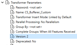 When you open a custom transformer, you can see the version number in the Navigator, under Transformer Parameters.