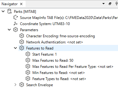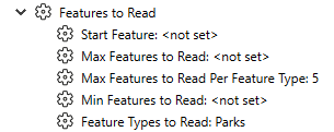 In this example, when you run the Workspace, it will only read the Parks feature type, starting at feature 1, to a limit of 50.