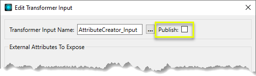 to open the Edit Transformer Input dialog. Beside the custom transformer name, unclick the Publish checkbox.