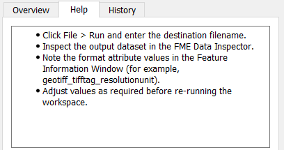 The History tab also displays the date and FME build on which the workspace was last saved.