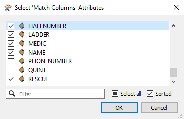 - Match Columns: The column(s) chosen in the corresponding column picker dialog will be used for matching destination rows. All matching rows will be selected for update, upsert, or delete. If any feature attributes corresponding to the specified match columns contain null or missing values, the feature will be rejected.