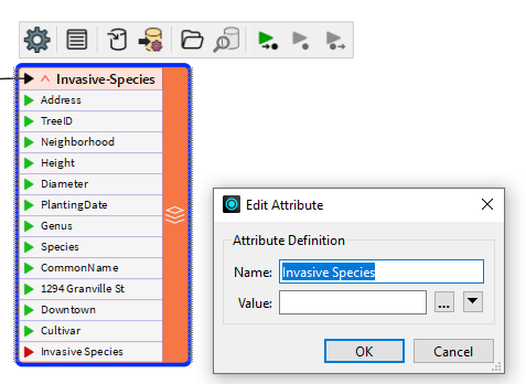 So, the most common method is to use the AttributeCreator transformer, but actually create the writer attribute and set it. For example, create invasive_species and set a value for it.