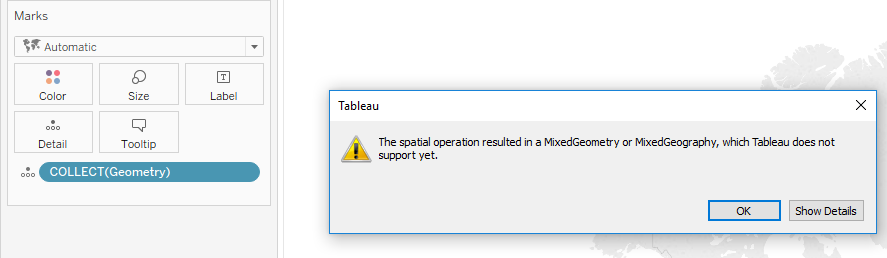 - Tableau Hyper does not support some geometry types. If you attempt to render any non-supported geometries (by dragging them into a mark in the sheets view), Tableau will open an error window indicating that they are not yet supported.
