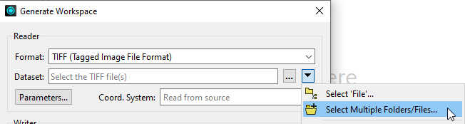 - The second mode allows the Multi-Reader to access multiple datasets of a single type that are located in a common folder. In this mode, individual readers do not need to be identified or configured. Although this mode requires much less configuration in the workspace for large data merges, there are some limitations to be aware of: the source folder can contain nothing but datasets of the type being read; and the configuration of each individual reader is exactly the same.
