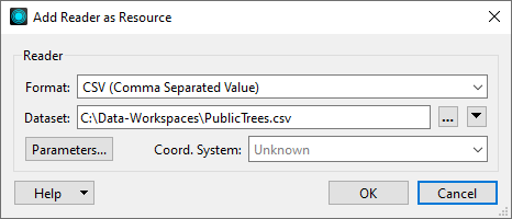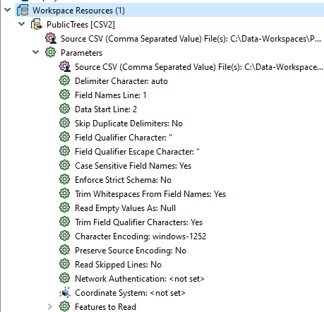 However, many formats contain also contain additional parameters that can control how the reader behaves. To expose a format's parameters in the Navigator pane, you will also have to add that format to the workspace as a resource.