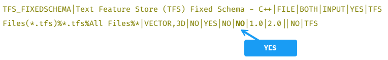 Text Feature Store (TFS) Fixed Schema is a model format that is distributed as part of FME’s Plug-in SDK to demonstrate how to create reader/writer plug-ins in three programming languages: