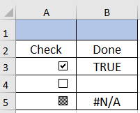 - Mixed (string) when the box is filled with a pattern. This can happen when the form control is bound to a cell with the value #N/A or the formula =NA().