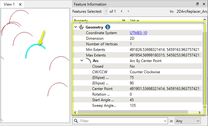 Replace any existing feature’s geometry with a 2D arc. |