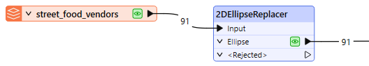 The 2DEllipseReplacer receives features of any kind and replaces their geometry with ellipses as defined in parameters.