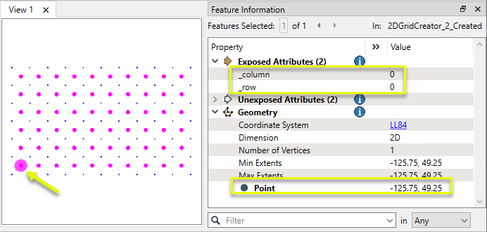 If Type of Grid to Create is Points (Corners), point features are placed at all cell corners.
