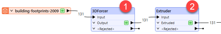 The features are routed into a 3DForcer to convert them from 2D to 3D.