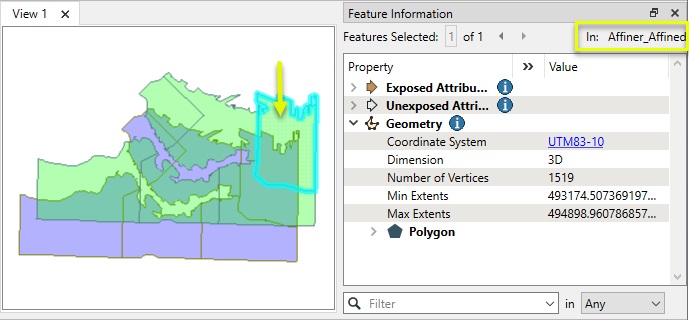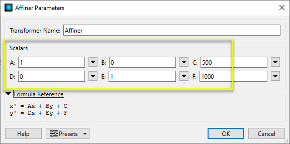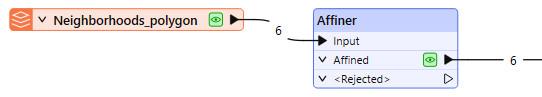 The Affiner receives features with any geometry type and moves their x and y coordinates according to a specified affine transformation.