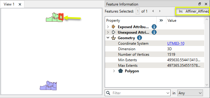 Note that even a small rotation such as this can produce large shifts in position when the features are georeferenced, as they are being rotated about their origin (0,0) which is at a distance.