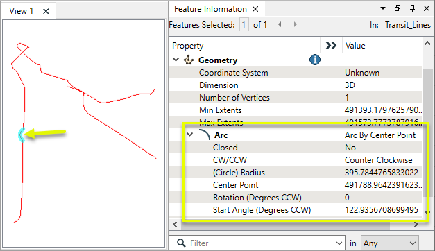 Extract the property values that describe an arc’s geometry and store them as attributes. |