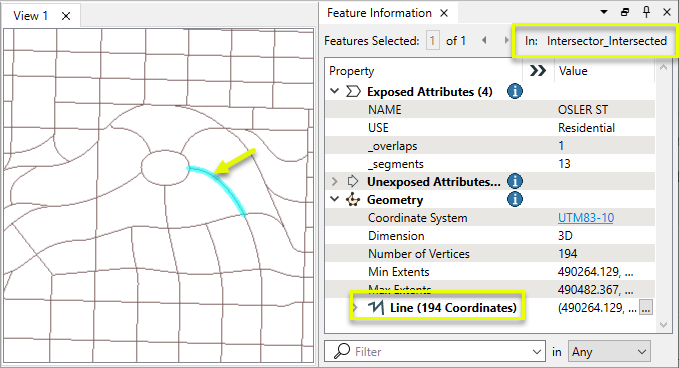 The output is successful this time. Note the list attribute, containing the street names and geometry orientation.