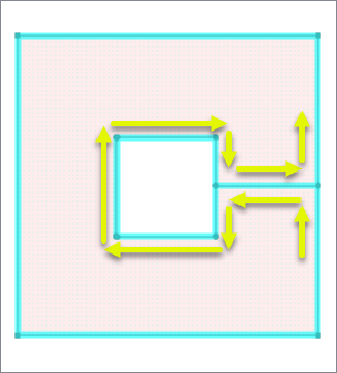 A cycle is a line segment that occurs twice in the same polygon's boundary, once in each direction. Note that areas with cycles may be considered invalid for other geometry processing or unsupported by some output formats. |