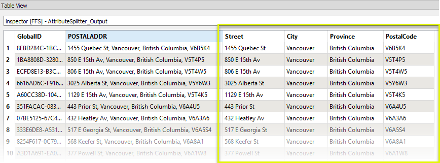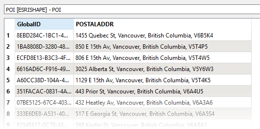 In this example, we have a shapefile containing points of interest, with postal addresses included as a single attribute. The parts of the addresses are separated by commas.