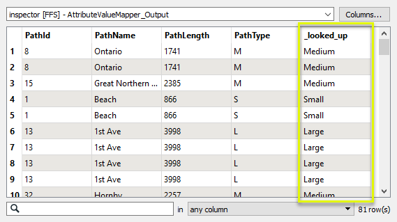 The output features now have a new attribute, _looked_up, containing the mapped values.