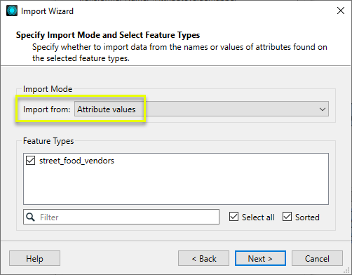 Note that on the second dialog - Specify Import Mode - we need to change the Import Mode to Attribute Values.