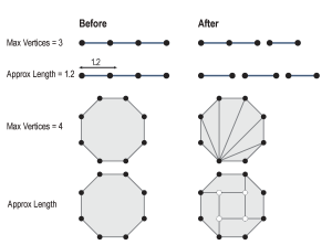Chops line, arc, path, or area features into smaller features based on number of vertices or approximate length.
