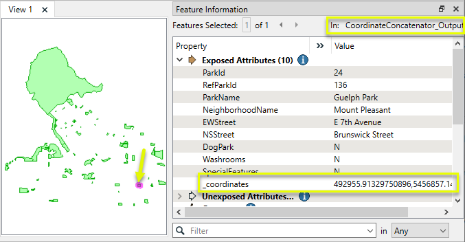 The output attribute value now contains coordinates separated by line, which could be written to a text file with an AttributeFileWriter or used elsewhere.