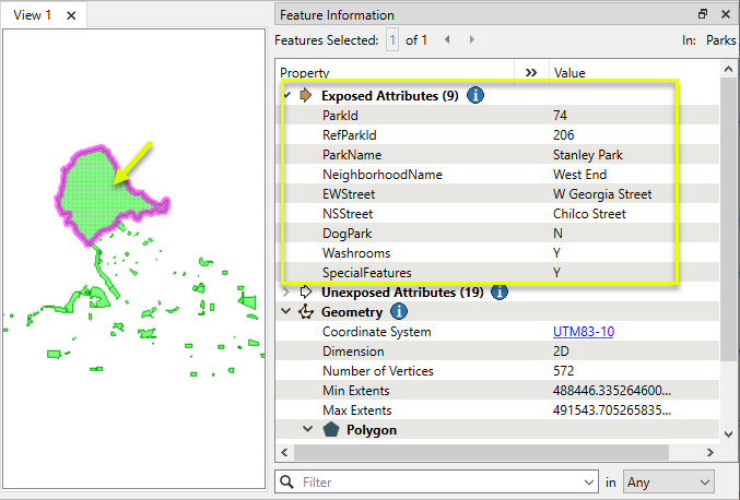If the input feature is a raster or point cloud, All Coordinates will return its extents, and Specify Coordinate will return the requested vertex on the bounding box (0, 1, 2, 3, 4). If the input feature is multi-part or aggregate, each part’s coordinates are indexed sequentially.