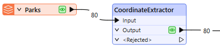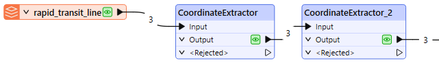 Features where either an invalid Coordinate Index or invalidDefault Z Value has been provided will be routed to the <Rejected> port.