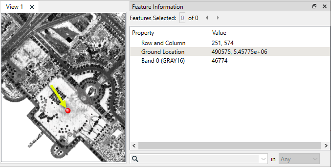 When drawing point clouds on color bands, the Input Component specifies which component of the point should be used to set the color of the raster pixel. If Color, the points in the cloud must have a color component. If Intensity, the points in the cloud must have an intensity component. The intensity component is converted to a color using a grayscale continuum, where the minimum intensity in the cloud is black and the maximum intensity in the cloud is white. |