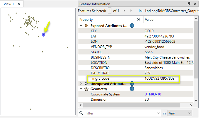In this example, we have a shapefile of food vendor locations, and want to generate MGRS codes for each location.