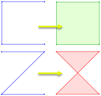 No checking is performed on the output geometry, and self-intersecting polygons can be created.