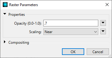 Raster Interpretation Type may be either RGB24 or RGBA32 (with alpha). The background of the raster can be either a specified color, or an image to be tiled over the extent of the raster. To use a georeferenced raster as the entire background, it should be connected to an input port and styled using the Rendering Rules and a Raster symbolizer (not attached as the Background Image).