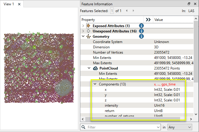 Note that the point cloud has a number of Components, and we can view limited information about those components.