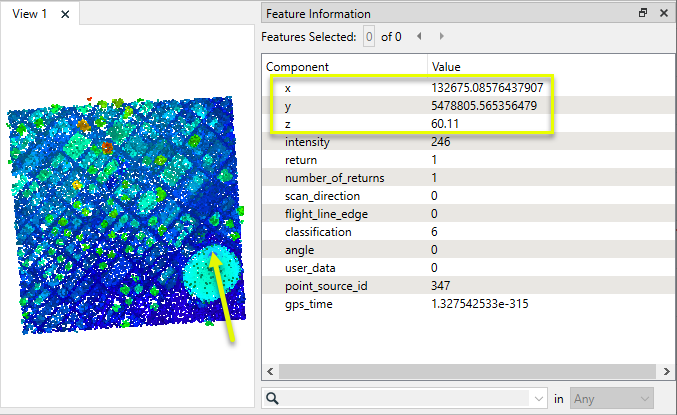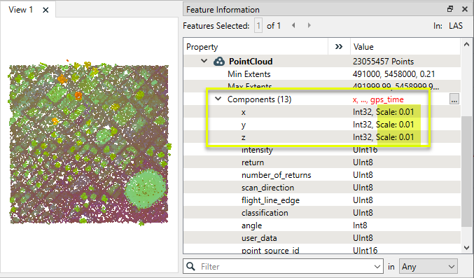 If we examine the component values of a single point in the point cloud, we can see how the Scale of 0.01 is interpreted to show coordinates with two decimal places.