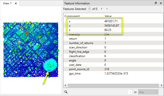 Separates point clouds into multiple features based on component values, color, or first/last return. |