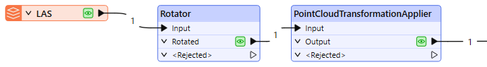 The PointCloudTransformationApplier receives point cloud features and applies transformations that are already present on the point cloud, recalculating the affected component values and removing the transformation from the feature.