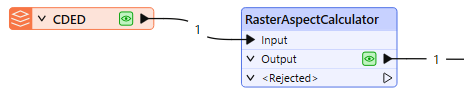 The DEM is routed into a RasterAspectCalculator.