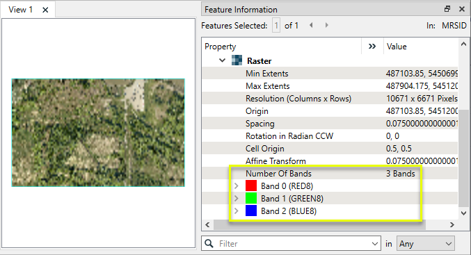 Extracts the band and palette properties of a raster feature and exposes them as attributes. |