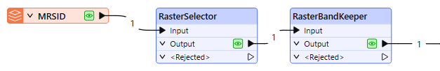 The raster is routed first into a RasterSelector, and then into the RasterBandKeeper.